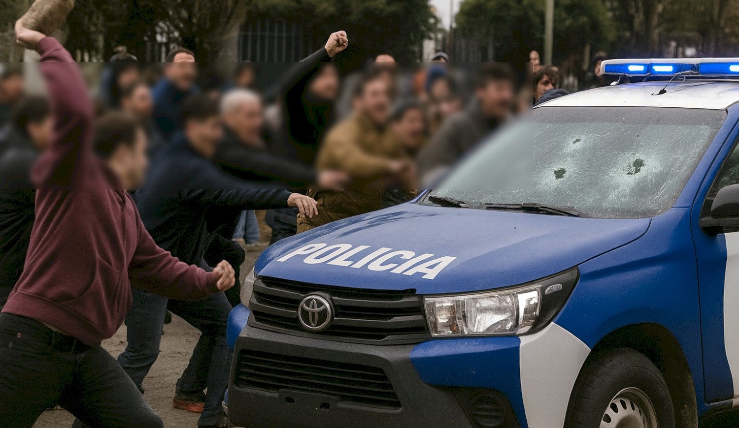 Lejos de tratarse de un procedimiento normal, los policías quedaron atrapados en medio de un enfrentamiento vecinal. Varios residentes de la zona comenzaron a lanzar piedras contra el patrullero y hasta intentaron linchar a los dos efectivos que se encontraban en su interior.